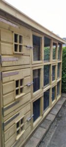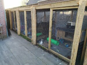 Er zijn geen binnenverblijven! Mocht u dit toch willen dan zijn er enkel kooien beschikbaar (100 cm of 140 cm lang).
