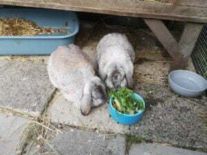 Elk verblijf wordt in ieder geval twee keer per week schoongemaakt. Dagelijks wordt er vers hooi en water verstrekt en krijgen ze brokjes en groente (dit in overleg met u).